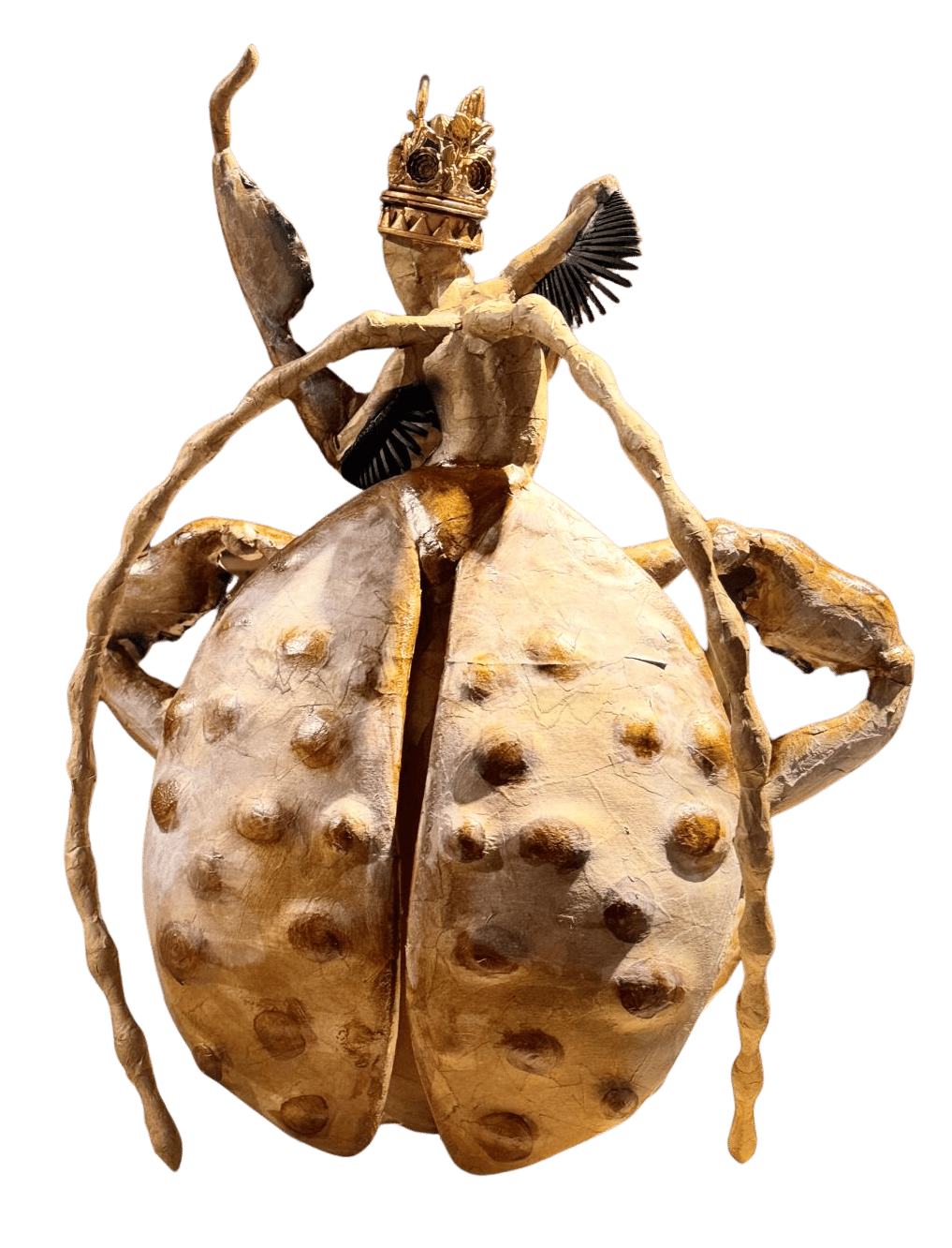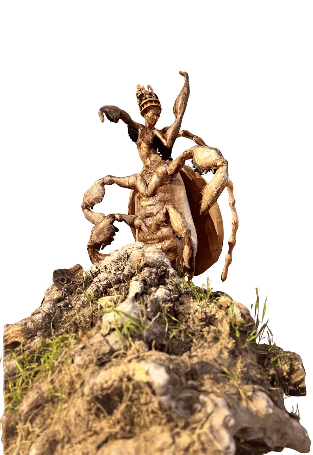 It exists as a structure that grows by detaching from nature, becoming heavier as it feeds, and eventually burdening the very body that carries it. The sculpture approaches the construction of the self as a defense mechanism—an emptied core encased within a hardened shell.