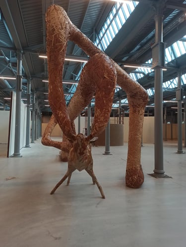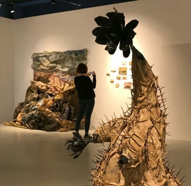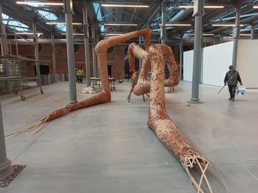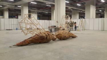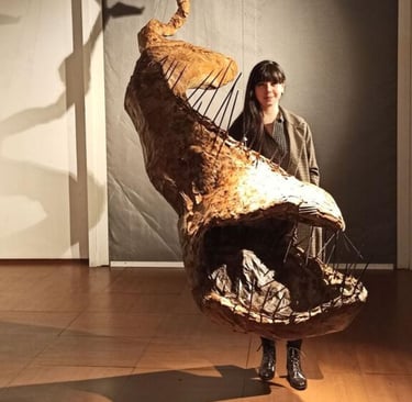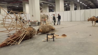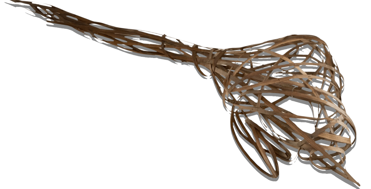 My engagement with weaving-based works stems from the reinterpretation of a profession inherited from my family roots through my identity as an artist. Basket weaving, rather than remaining a purely functional craft, evolves within my productions—expanding beyond the basket form, spreading into space, integrating with its surroundings, and at times transforming into invasive, dominant structures.