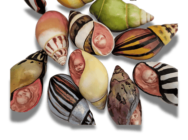 The traces left by clay, salt, and fire become memory inscribed on the faces; the shells stand as both shield and boundary for carried lives. What is left to the viewer is to listen to the sea passing through these silent cradles, to the lost breaths, and to the fragility of rebirth.