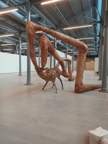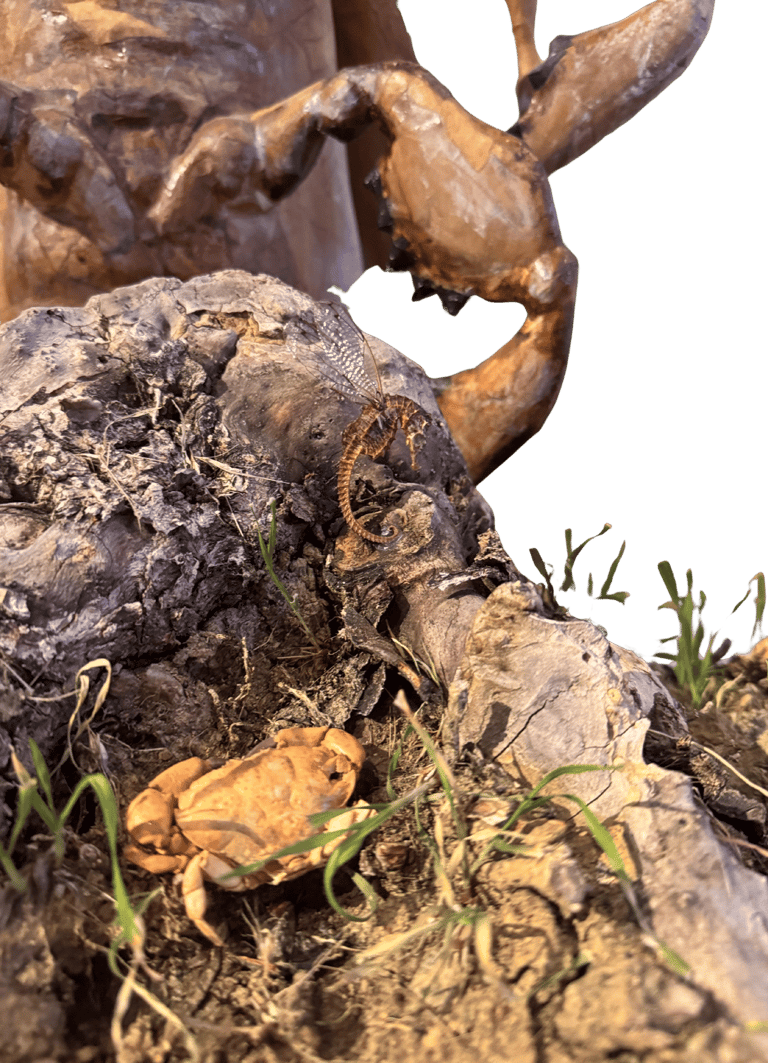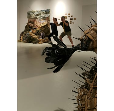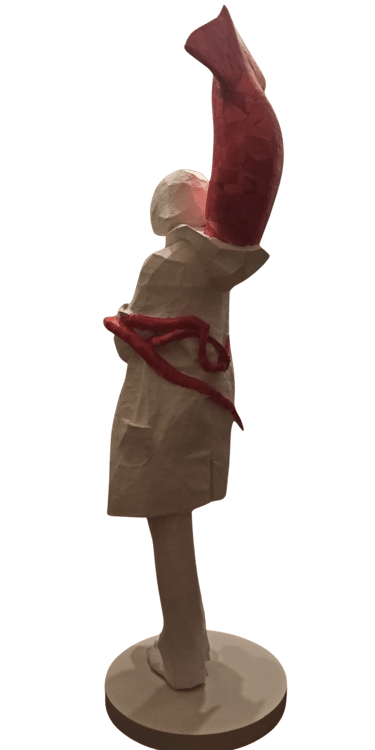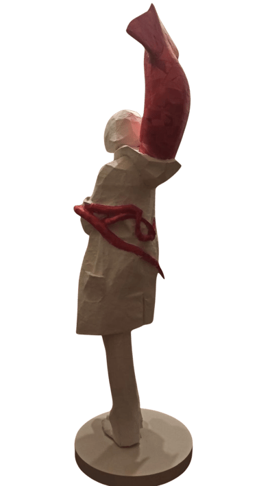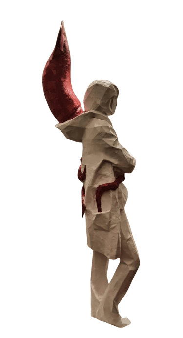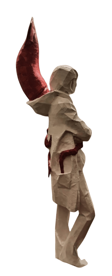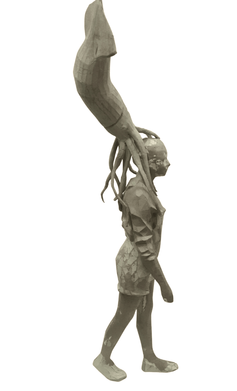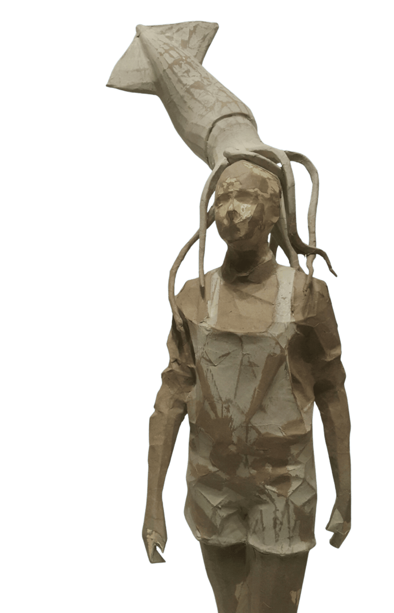 what appears strong, solid, and dominant from the outside is internally fragile and incomplete. This confrontation invites the viewer to recognize the ego’s dual nature—both protective and destructive. As the human becomes trapped within the self it has created, the sculpture translates this confinement into space and body.
