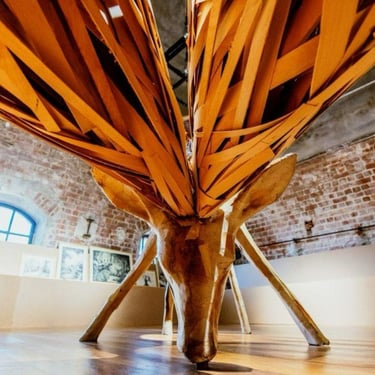 Using paper and wood together, Invasion is a sculptural installation of a deer whose antlers extend, branch out, and occupy the entire volume of the space it inhabits. The work proposes that, within a nature dominated by human sovereignty, other living beings can sustain their existence only by imitating the “invasive human.” In this context, the installation constructs a scene that reveals the dysfunctionality of a mutated creature.