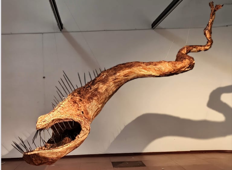 Resembling an organic form, the structure evokes a presence that is both alive and threatening. The sharp protrusions along its surface symbolize the ego’s instinct to protect itself and the spiked distance it establishes against the outside world. Through its scale, the sculpture deliberately disrupts the viewer’s bodily perception; here, the ego is not only a mental construct but a physical force to be confronted.